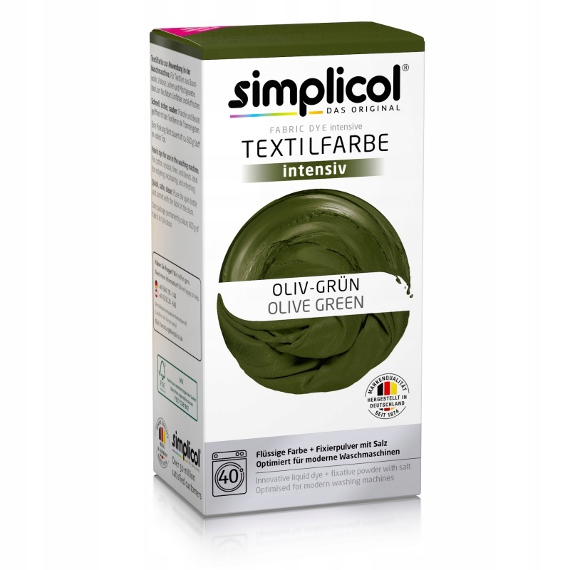Simplicol Barwnik do tkanin Intensywny nadaje się do farbowania bawełny, lnu, wiskozy i tkanin mieszanych (tkaniny z zawartością sztucznych włókien do 50%). Dzięki płynnej formule błyskawicznie się rozpuszcza - intensywny, równomierny efekt farbowania. Idealny również do pralek z systemem oszczędzania wody.