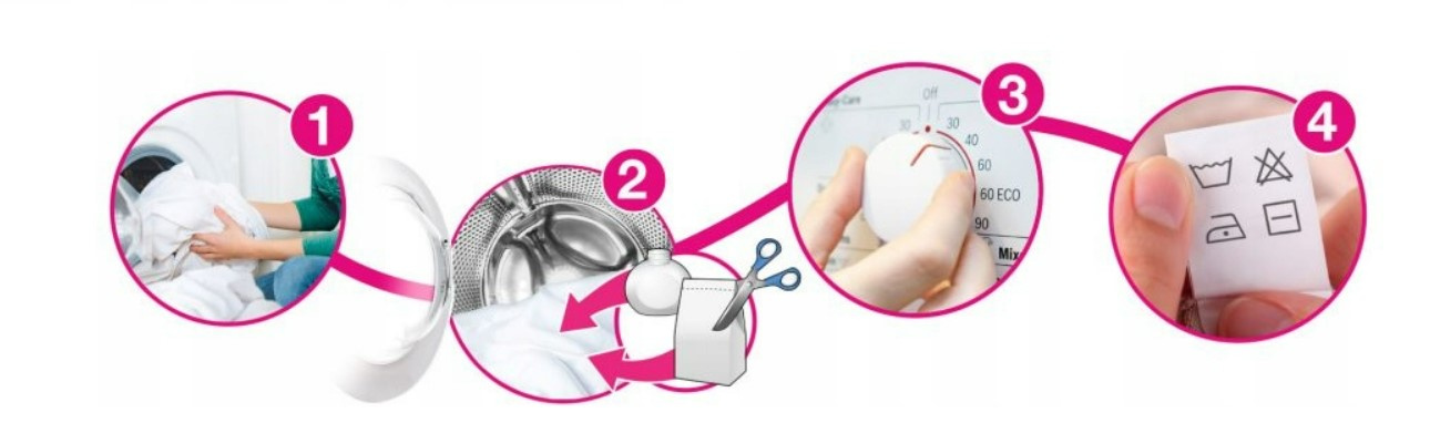 - Bezpieczny – nie uszkadza pralki oraz tkanin.