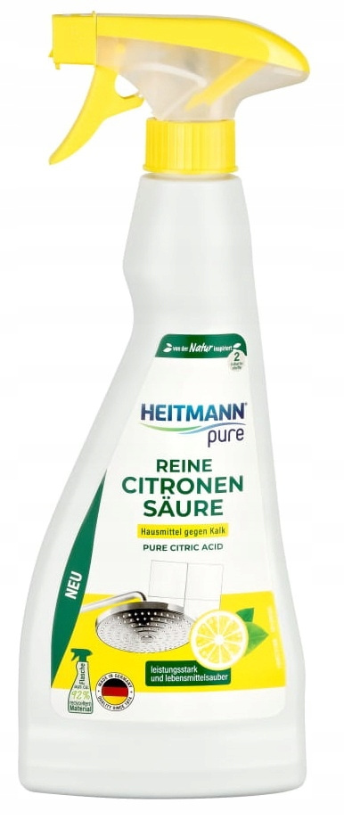 Czysty kwas cytrynowy marki Heitmann rozpuszczony w wodzie fantastycznie sprawdza się jako praktyczny spray do usuwania kamienia z powierzchni, armatury i przedmiotów w kuchni oraz łazience. Czysty kwas cytrynowy od dawna sprawdza się w odkamienianiu w domu, zapewnia również ochronę przed brudem i zarazkami. Szybko, łatwo i w sposób bezpieczny dla żywności usuwa kamień z powierzchni w kuchni i łazience.