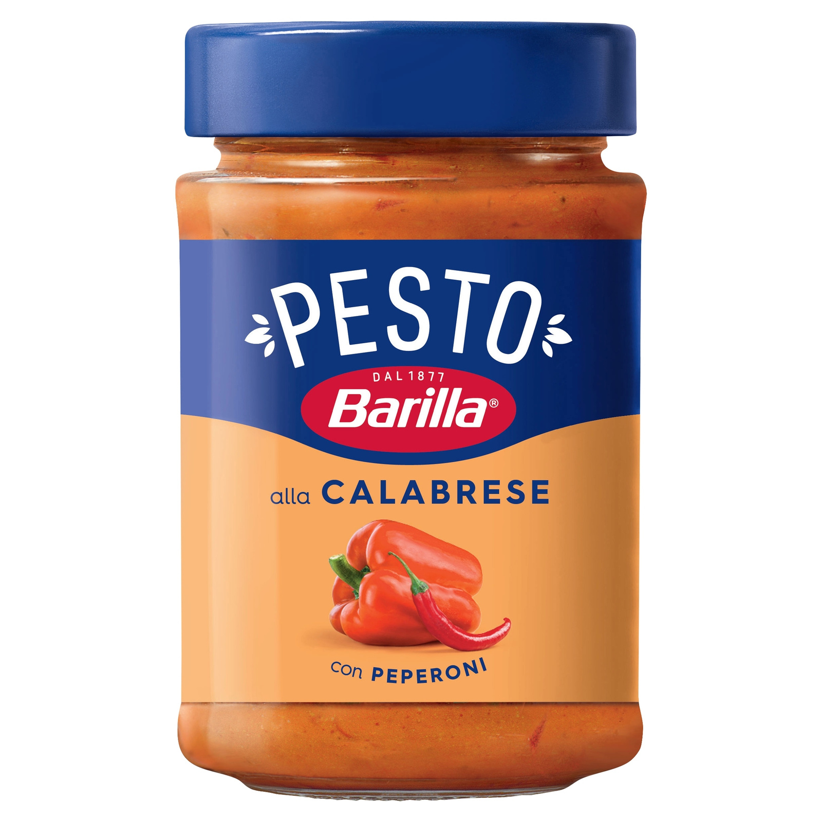 Barilla Pesto Calabrese: Pesto Calabrese to doskonały dodatek do makaronu wzbogacający smak i kolor dania dzięki czerwonej papryce z dodatkiem chili oraz serów Grana Padano i Pecorino Romano.