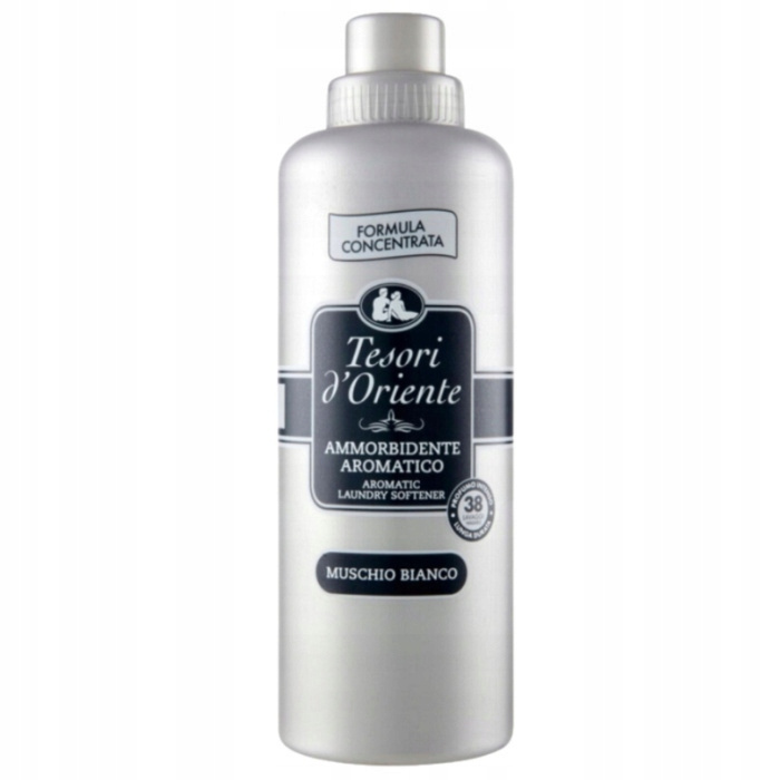 Tesori d'Oriente MUSCHIO BIANCO to włoski, perfumowany płyn do płukania tkanin o orientalnym i zmysłowym zapachu białego piżma wzbogaconym o harmonijne, bursztynowe nuty. Skoncentrowana i kremowa formuła płynu doskonale zmiękcza włókna tkanin oraz redukuje złogi mineralne w ich wnętrzu, ułatwiając tym samym prasowanie oraz zapewniając wyjątkową miękkość.